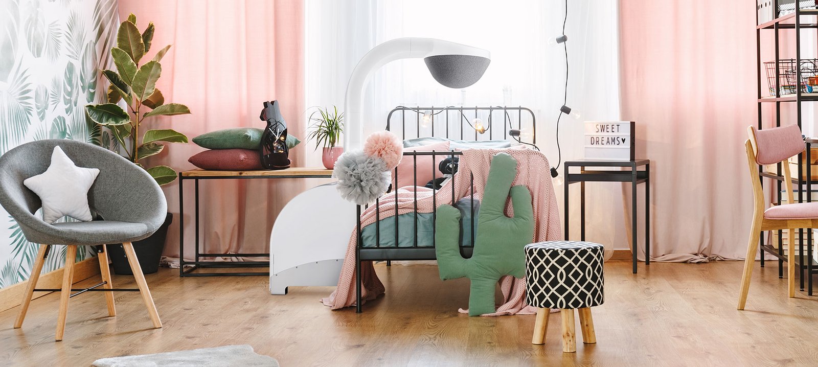 Air purifiers try to clean the whole room. The TLA technology in Airsonett Air4 focuses on purifying the air in your breathing zone while you sleep, and also lowering the total particle exposure in the room.